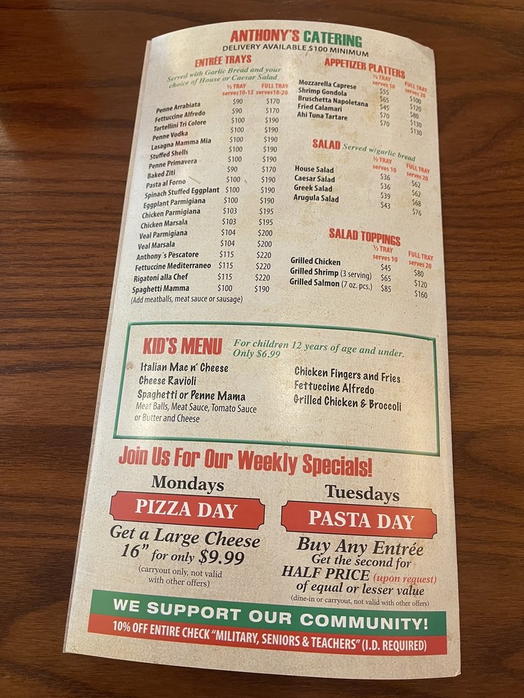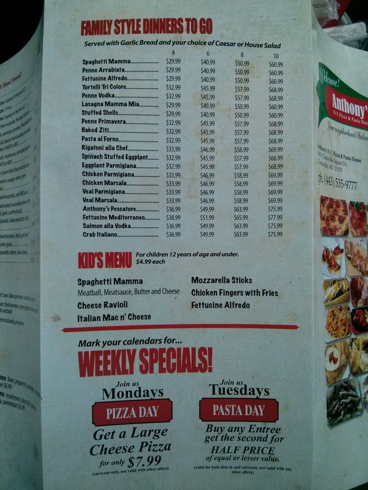 Welcome to Anthony’s NY Pizza & Pasta House, where Italian charm meets comfort food delight in Clarksville, MD. This gem offers a cozy dining experience complemented by a varied menu that celebrates authentic New York-style pizza and fresh pasta dishes.